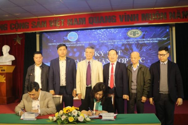 Lễ ký thỏa thuận hợp tác giữa Trung tâm Trọng tài Giải quyết Tranh chấp Thương mại Quốc tế Khu vực Châu Á – Thái Bình Dương (PACC) và Trường Đại học Tài chính – Ngân hàng Hà Nội (FBU).